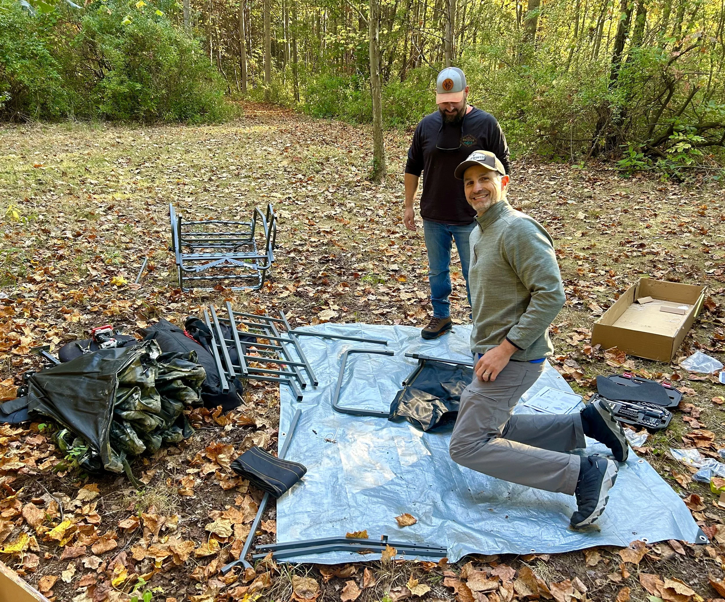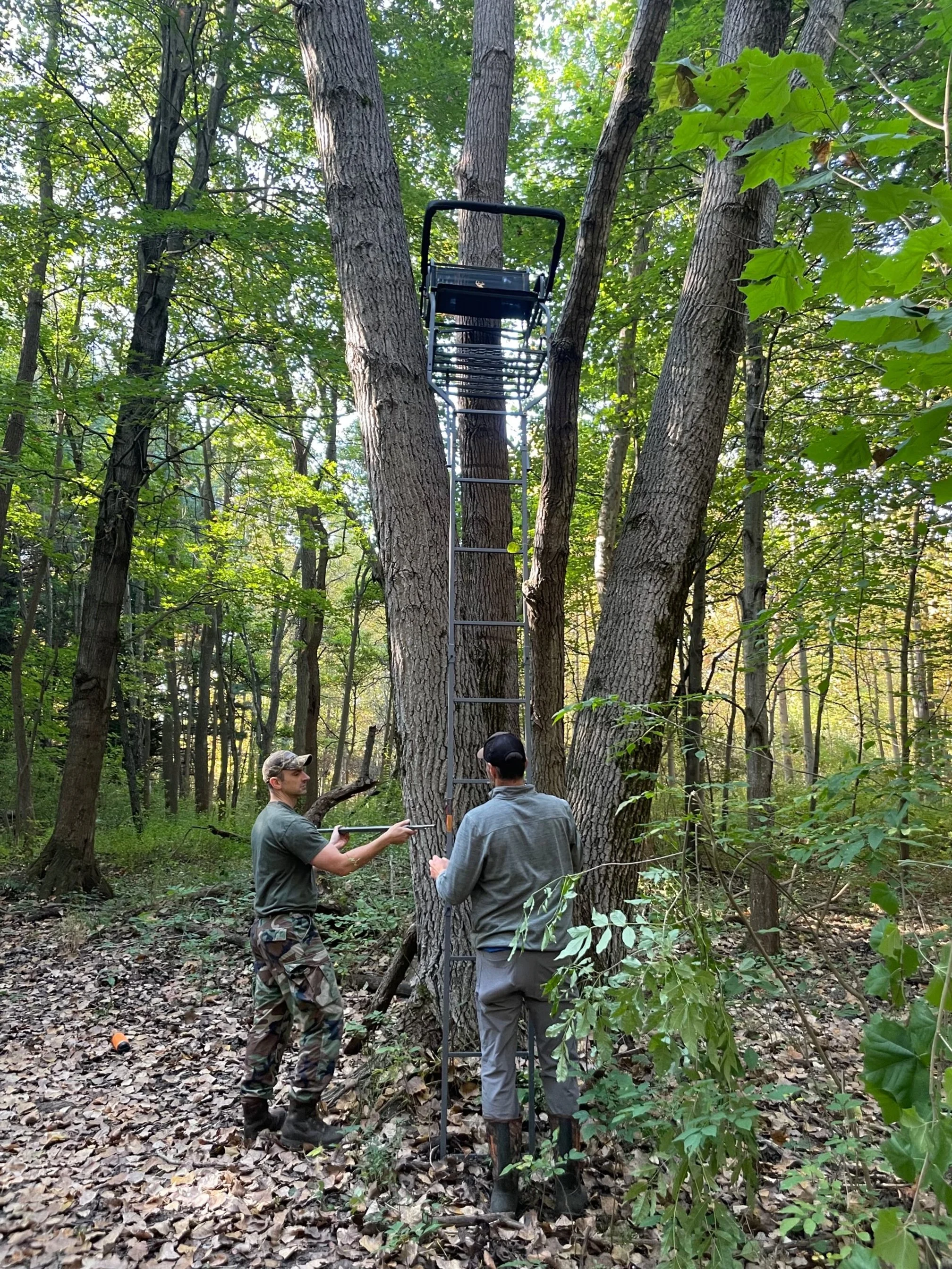 Larry, Chris, and Nick headed to Michigan to finalize last minute preparations for the upcoming season. There are always things to do! Not always optimal to perform ladder stand assembly in the field…but you do what you gotta do! GOOD LUCK TO EVERYONE THIS SEASON!